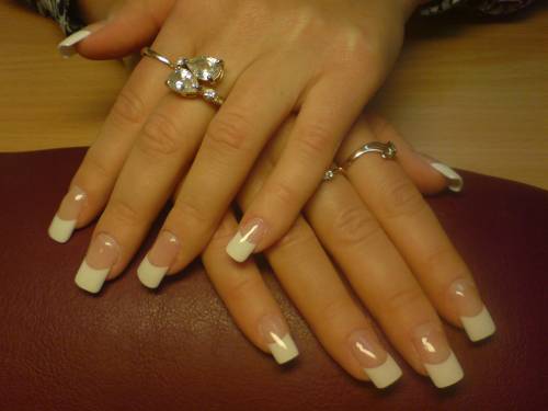 Наращивание на типсах-френч, без покрытия лаком.