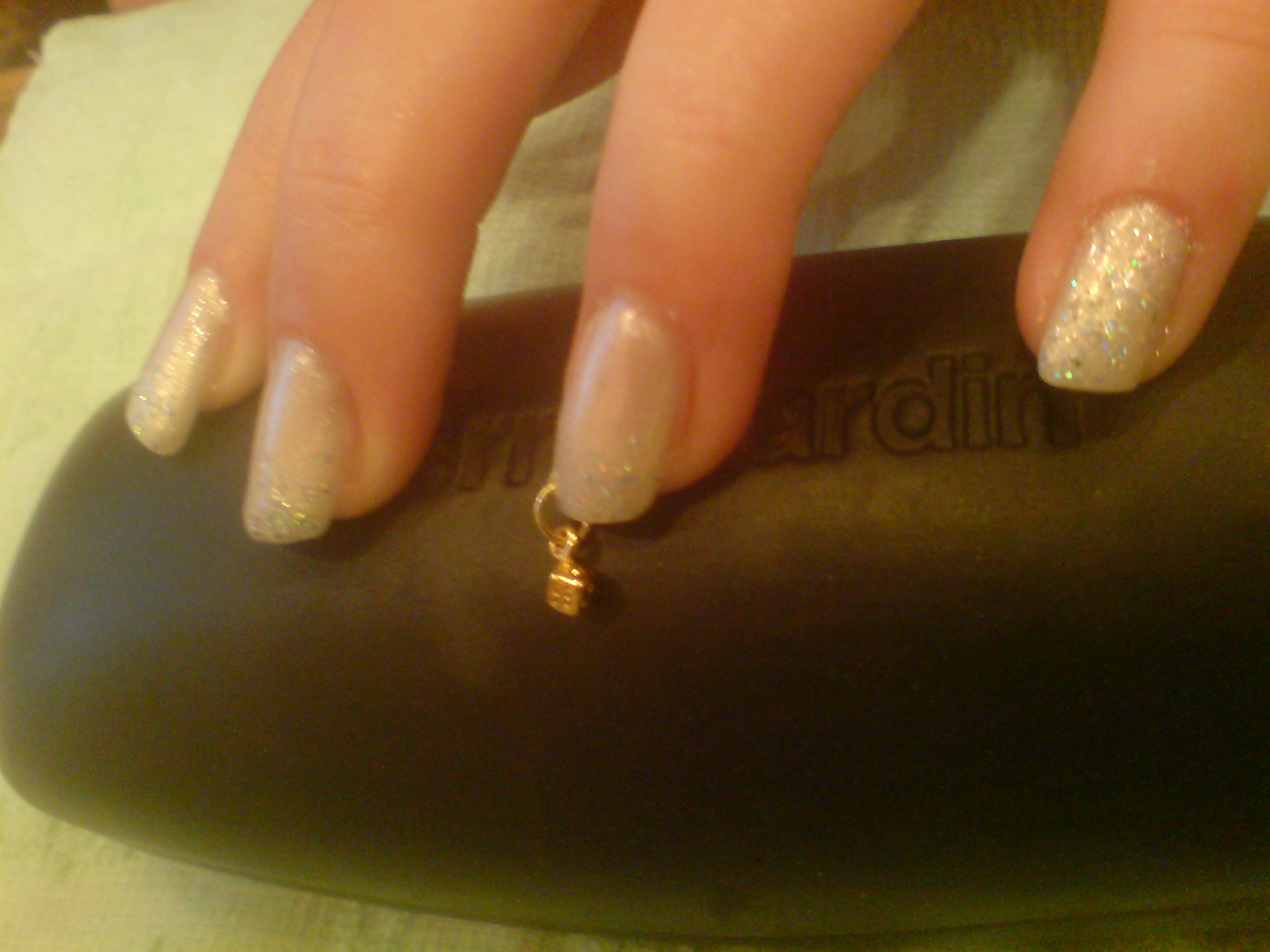 Прозрачные ногти, поверху нежно-розовый лак и стразик для таинственности)
