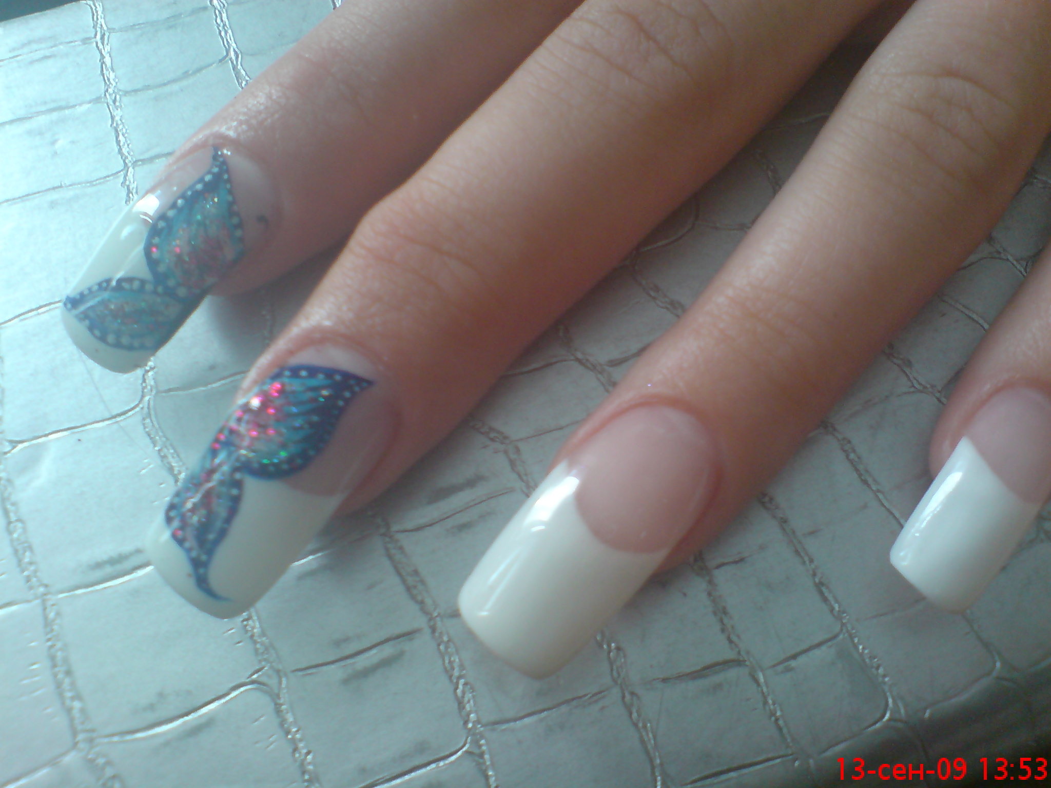 Наращивание френч + роспись)